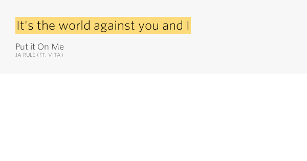The song also appeared on the fast and the furious soundtrack and also in the film double take. Lyrics to put it on me by ja rule. Watch video comment enlarge font. And i appreciate the rocks and gifts that you copped me baby, and the house on the hill when you dropped like 80 on the down payment thinkin damn aint life crazy and ever since for my hunny. Lyrics for put it on me by ja rule. Read or print original put it on me lyrics 2020 updated! Put it on me lyrics. But every thug needs a lady. Check amazon for put it on me mp3 download browse other artists under j:j2 j3 j4 j5 j6 j7 j8 songwriter(s): The thought alone might break me and i don't wanna go crazy but every thug needs a lady. ja rule since we met it's been you and i a tear for a tear, baby eye for an eye and you know that my heart gon cry if you leave me lonely cuz you not just my thank you for visiting our ja rule put it on me lyrics page. When you need a shoulder to lean on, never hesitate. lil mo(ja rule) where would i be without you baby so if you need me if you want me to put it on you because i love you and don`t you forget it whene.